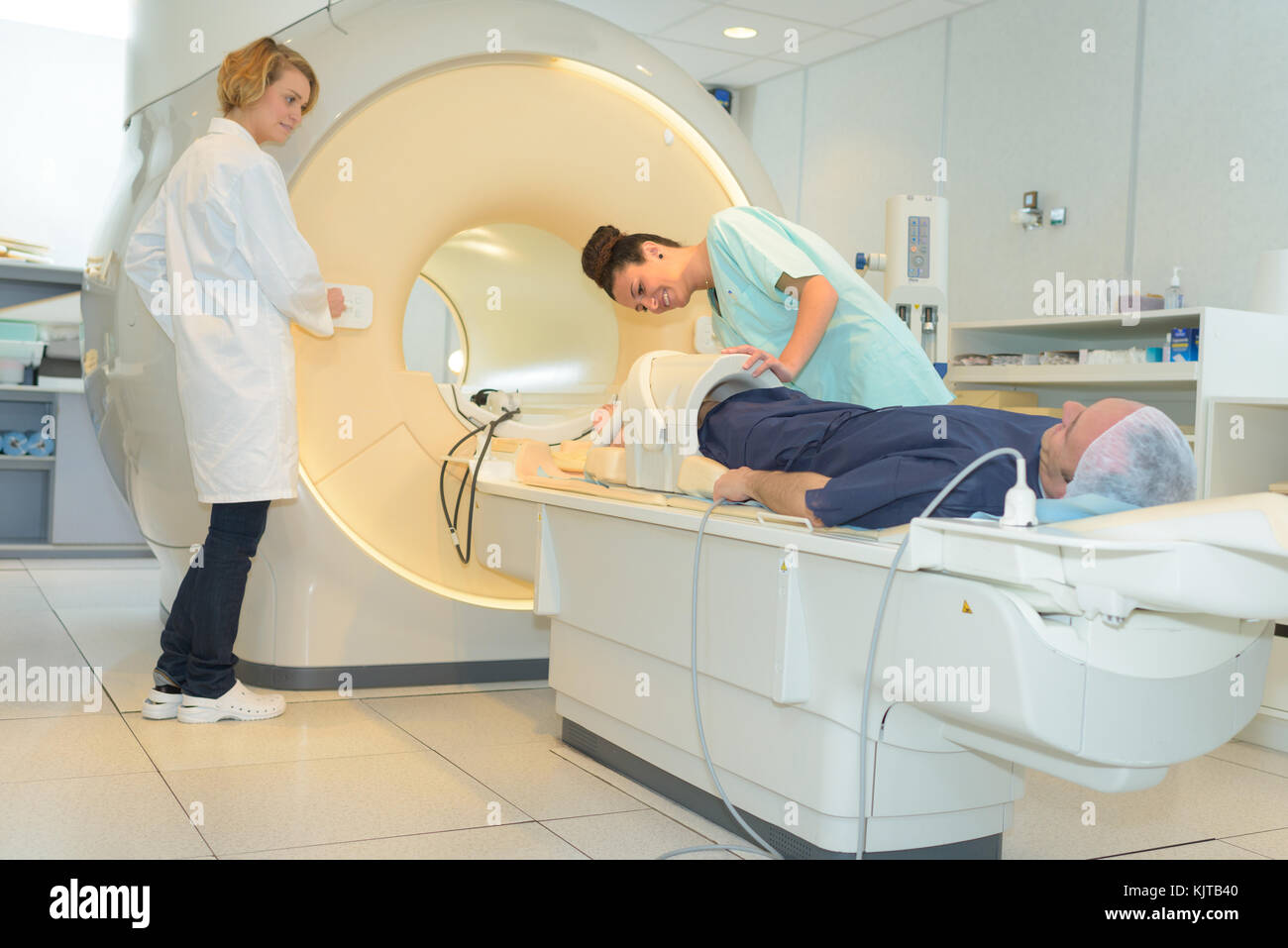 Doctor And Nurse Preparing Patient For Mri Scan In Hospital Stock Photo Alamy